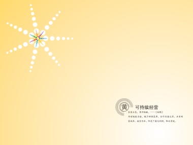 黄 可持续经营 金者五色,黄乃极致。——《论衡》 华丽极致为金,赋予辉煌色泽,合作共赢之际,共享财 富成长。诚信为本,阳光下最大利润,取之有道。 18 太阳·七色光·中国建筑