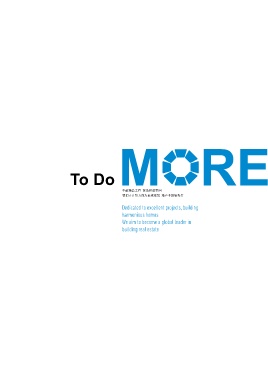 To Do 奉献精品工程 营造和谐家园 我们正在努力成为全球建筑 地产业的领先者 Dedicated to excellent projects, building harmonious homes We aim to become a global leader in building real estate