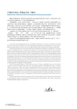 作,在《中国对外承包工程行业社会责任指引》制订工作中发挥了重要作用,并成为了首批实践企业之一。中国建筑