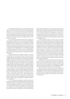 和方法,提出争做“央企一流,行业排头”的目标,企业 沟通,不断提升公司运营的透明度,在新的征程中引领行 our goal of “being a first-class central enterprise and the flagship in the China Construction has released several sustainability reports to