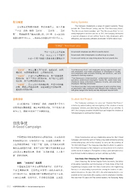 帮”,帮助困难员工解决后顾之忧。2011年,公司总部发 needy employees from their worries. In 2011, the Company distributed 在任职期间,她每年平均有200多天深入施工一线,先 China Women's Daily, among others, to produce in-depth reports. During