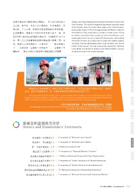 帮”,帮助困难员工解决后顾之忧。2011年,公司总部发 needy employees from their worries. In 2011, the Company distributed 在任职期间,她每年平均有200多天深入施工一线,先 China Women's Daily, among others, to produce in-depth reports. During