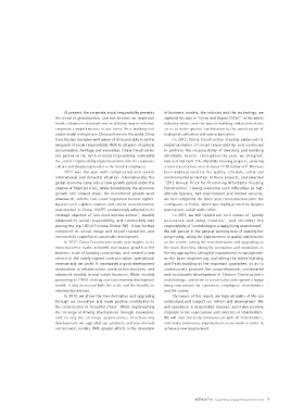 辞。经过 60 年的文化积淀、传承和创新,履行社会责 这一年,中国建筑担当社会责任的排头兵,履行 vanguard of social responsibility. With its 60 years of cultural implementation of social responsibility, and continued