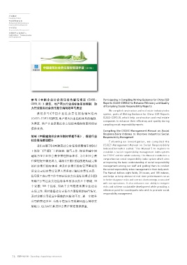 我们开展了《中国建筑社会责任指标管理手册》(以 CSCEC Management Manual on Social Responsibility Social Responsibility
