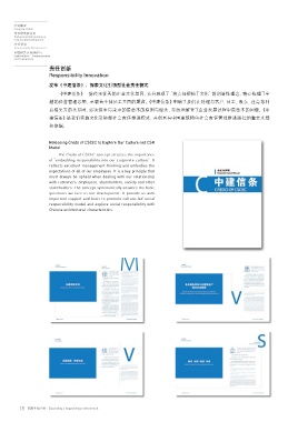 建信条》是我们实施文化引领型社会责任推进模式,开创具有中国建筑特色社会责任管理推进路径的重要支撑 are proactively responding to their needs to strengthen our