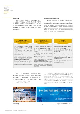 我们将效能监察作为促进企业管理提升、核心业 Regularly supervising our efficiency is an important 我们加大风险管控工作,将财务损失、内部控制、 We have intensified our risk management and control