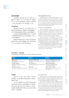 我们开展科技设计人员、采购人员、施工人员的 我们完善客户服务体系、健全客户沟通渠道,不 We have improved our customer service system, customer