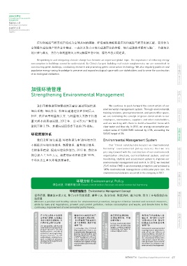 各项目设立项目发展部 理工作导则》,规范节能 监测统计体系 Set up environmental 核激励及惩罚推进环境