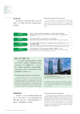 加强 CI 工作,推进施工现场管理,促使项目真正融入 communities. On site we improve our CI management to Saving Building Materials Reducing Energy Consumption Saving Construction Water